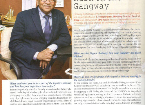 Tags News admin 9 years ago T. Venkataraman, Managing Director Goodrich Group in an Interview with the Cargo Connect Magazine […]